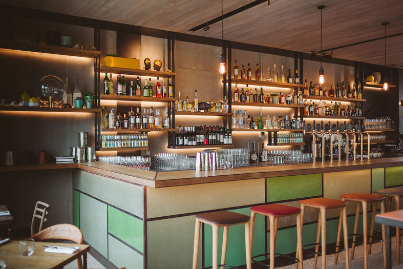 Містячи триповерховий ресторан і бар з оглядовими терасами, Lighterman задуманий як єдина скульптурна форма. Розкриття до пішохідної доріжки каналу сприяє збільшенню пішохідного зв’язку та збільшенню активності на сусідній Granary square. Lighterman, хоч і повністю сучасний за своїм дизайном, добре доповнює промислову спадщину району. Їдальня, бари та відкрита кухня, що природно провітрюються, мають вікна на всю висоту, які наповнюють інтер’єр природним світлом. Ресторан окомплектовано популярними моделями Neva від Artisan